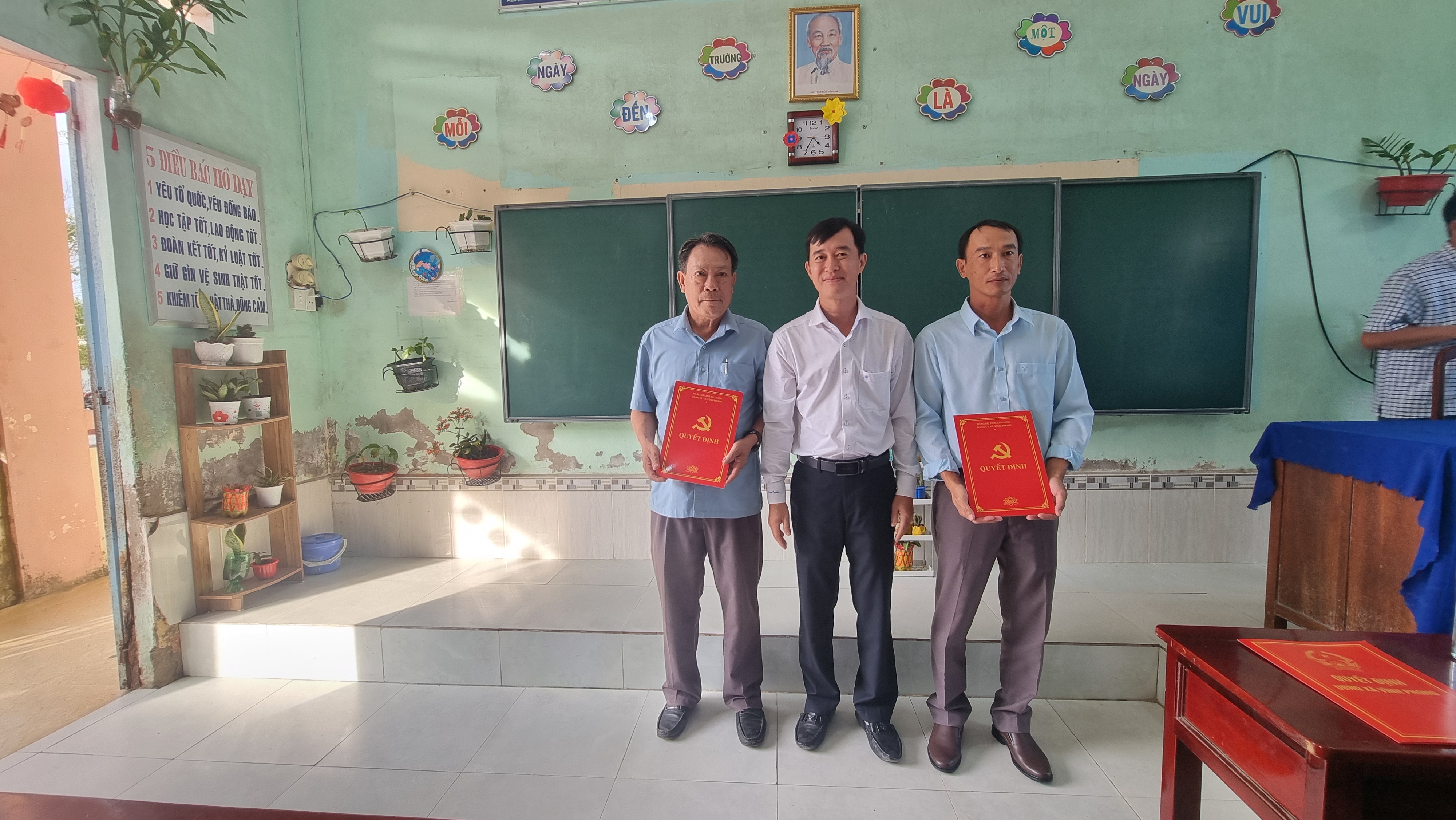 Cuộc họp diễn ra trong không khí nghiêm túc, trang trọng, với sự tham dự của đại diện UBND xã Vĩnh Phong, Ban Giám hiệu nhà trường cùng cán bộ, giáo viên. Tại buổi họp, lãnh đạo UBND xã đã công bố Quyết định bổ nhiệm và giao nhiệm vụ cho ông Hà Thanh Dũng trên cương vị mới, đồng thời bày tỏ sự tin tưởng ông sẽ tiếp tục phát huy năng lực quản lý, góp phần xây dựng và phát triển nhà trường ngày càng vững mạnh.